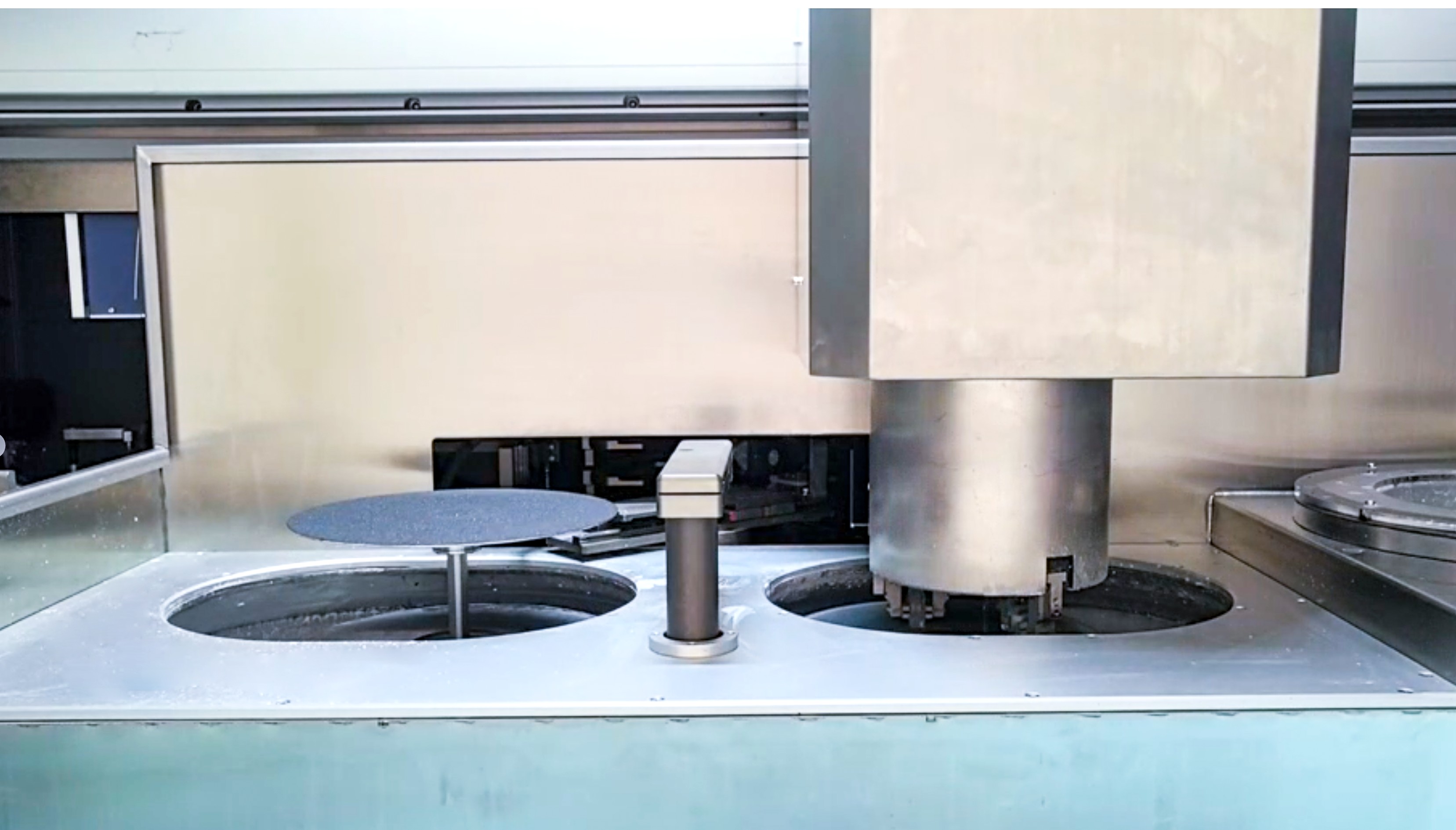 7)Dvojité pracovné stanice s automatickou výmenou brúsnych kotúčov; pojme až 20 brúsnych kotúčov.